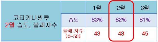 불쾌지수는 평균 43으로 매우 나쁜 수준으로