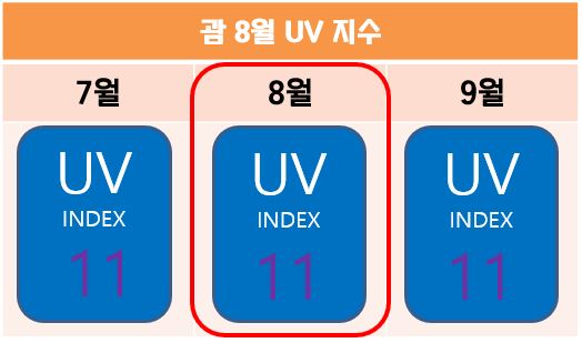 괌 8월 날씨 자외선 지수가 11+입니다.
