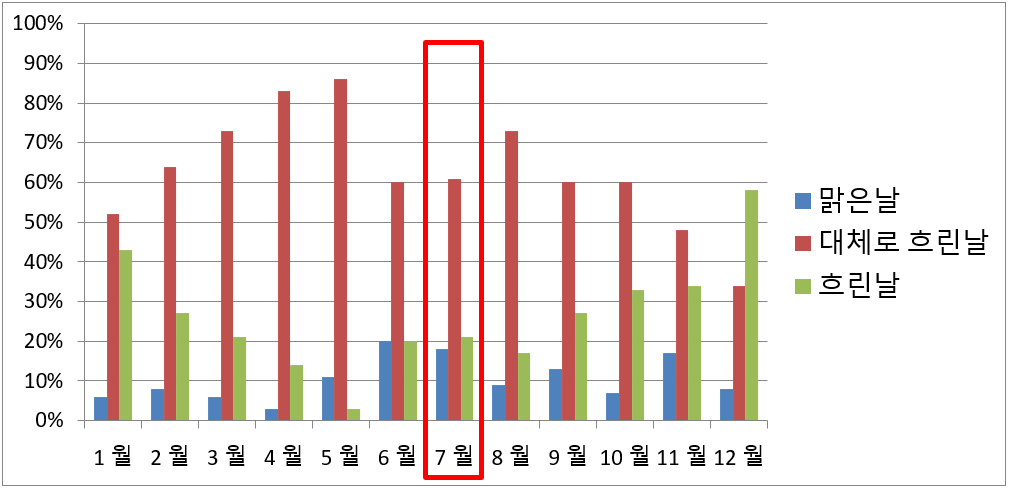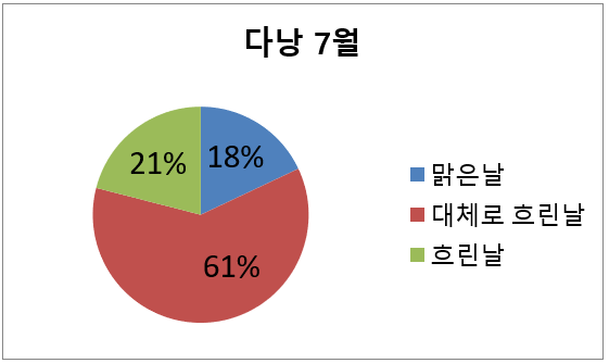 다낭 7월 날씨는 대체로 흐린날이 61%로