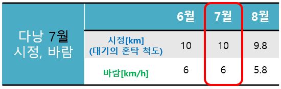 다낭 7월 날씨 시정이 10km으로 보통입니다.
